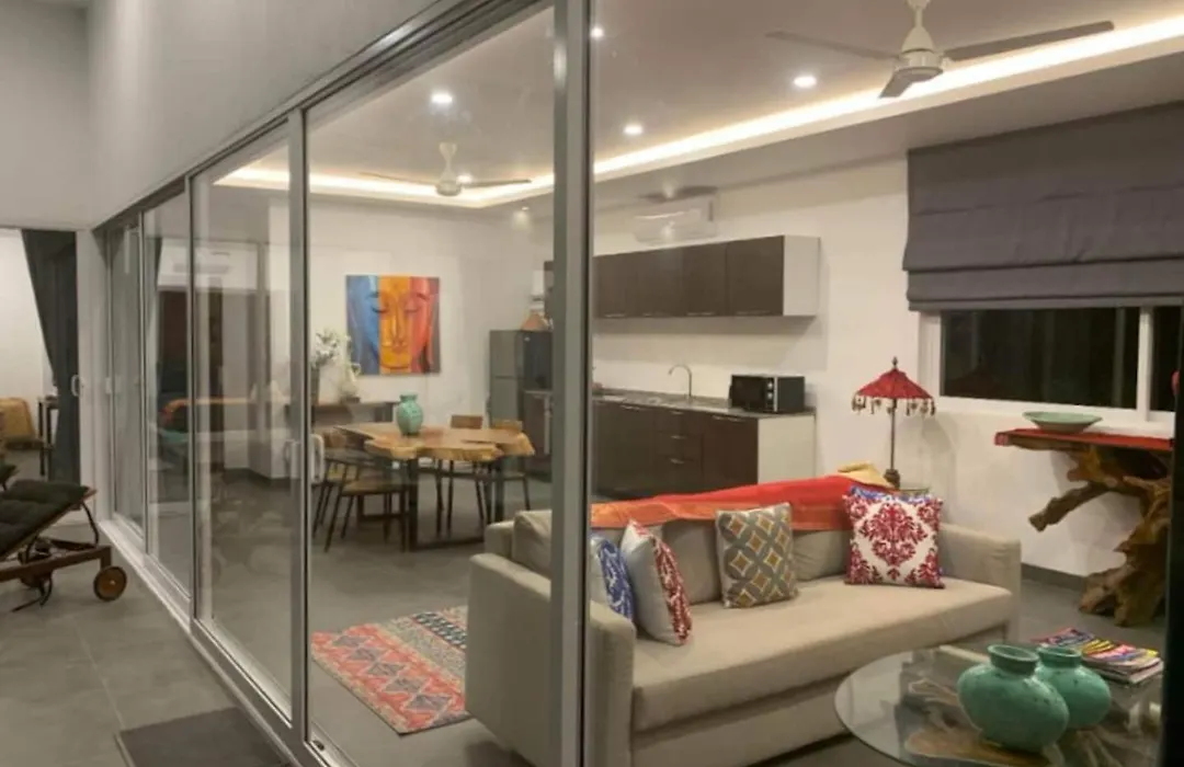 该别墅距离苏梅国际机场约有15分钟车程,是一个舒适的住宿选择. 客人可以在别墅的露台享受美好的时光.